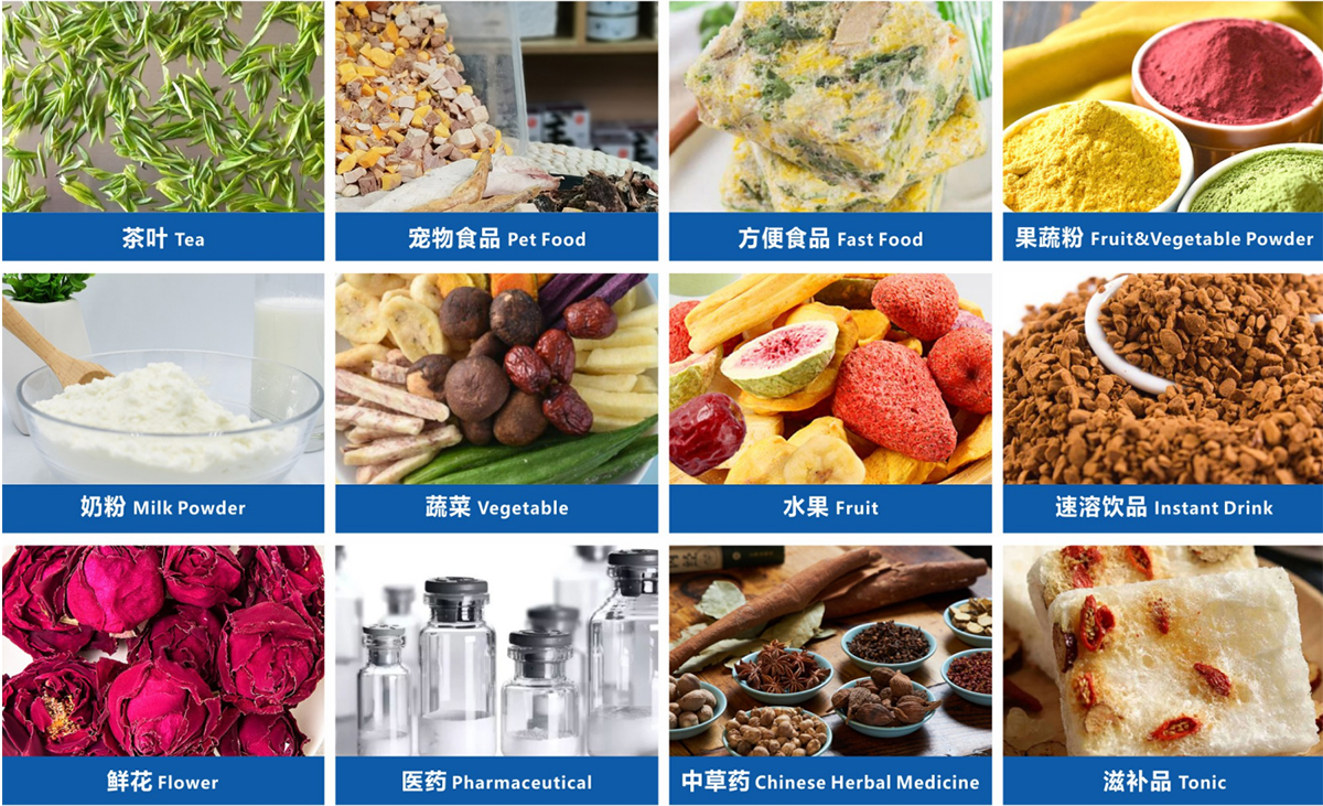 凍干機適用于食品、蔬菜、水果、植物提取物、中藥材、鹿茸、果粉、花卉、咖啡、海參、生物制品和化工物料等產(chǎn)品
